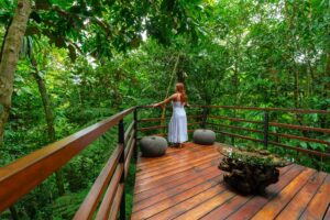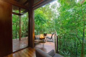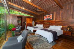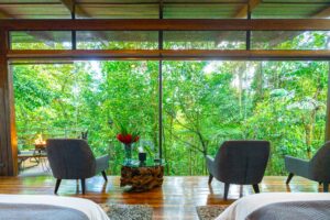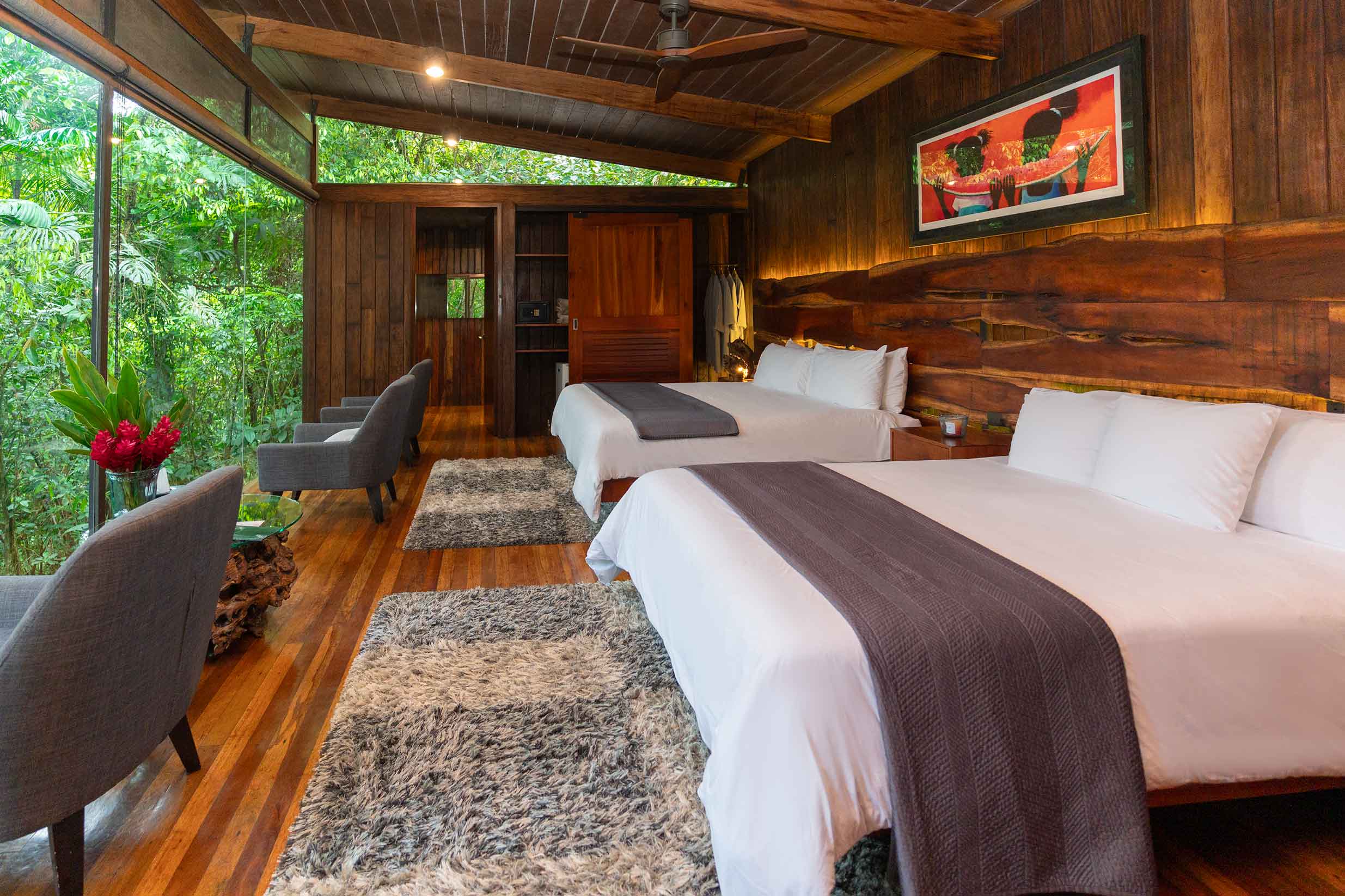 La suite Premium es ideal para familias o grupos de amigos que deseen sumergirse en la naturaleza mientras disfrutan de un alojamiento espacioso, diseñado para desconectar por completo del estrés y la rutina diaria. Lo más destacado de esta habitación es su impresionante terraza, perfecta para compartir momentos inolvidables con tus seres queridos cada noche. Si buscas un escenario digno de Instagram para tu estancia, ¡esta suite es la mejor opción!