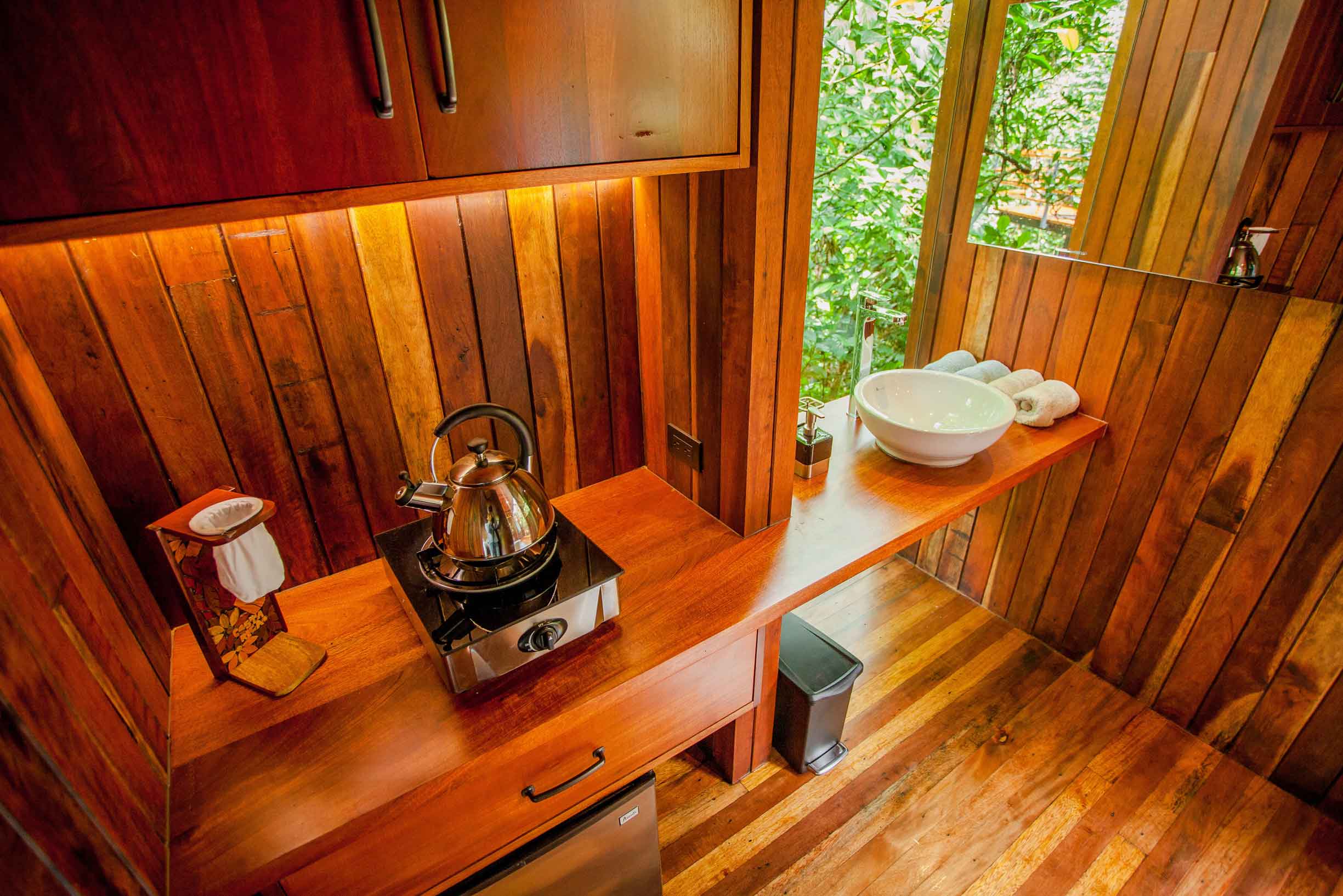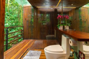 Disfruta de una escapada inolvidable en nuestra suite, que cuenta con una impresionante hamaca en el pasillo principal y una acogedora zona junto a la hoguera, perfecta para entrar en calor en las noches frescas. Con dos lujosas camas king-size, encontrarás todo lo necesario para relajarte mientras te envuelve el relajante ambiente de la selva tropical. Pasa las tardes en la terraza y disfruta del espacioso cuarto de baño con un pequeño balcón, que te ofrece una conexión auténtica y envolvente con la naturaleza.