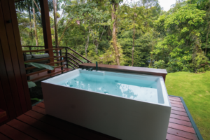 Descubre Villa Kukula, situada en el tranquilo complejo de villas Ecolirios, donde el confort se une a una privacidad sin igual y a unas cautivadoras vistas a la montaña. Disfruta de la tranquilidad de un bosque frondoso y virgen y deléitate con el esplendor de un hermoso río, todo ello mientras te relajas en el jacuzzi con unas impresionantes vistas a la cascada. Tu estancia incluye: