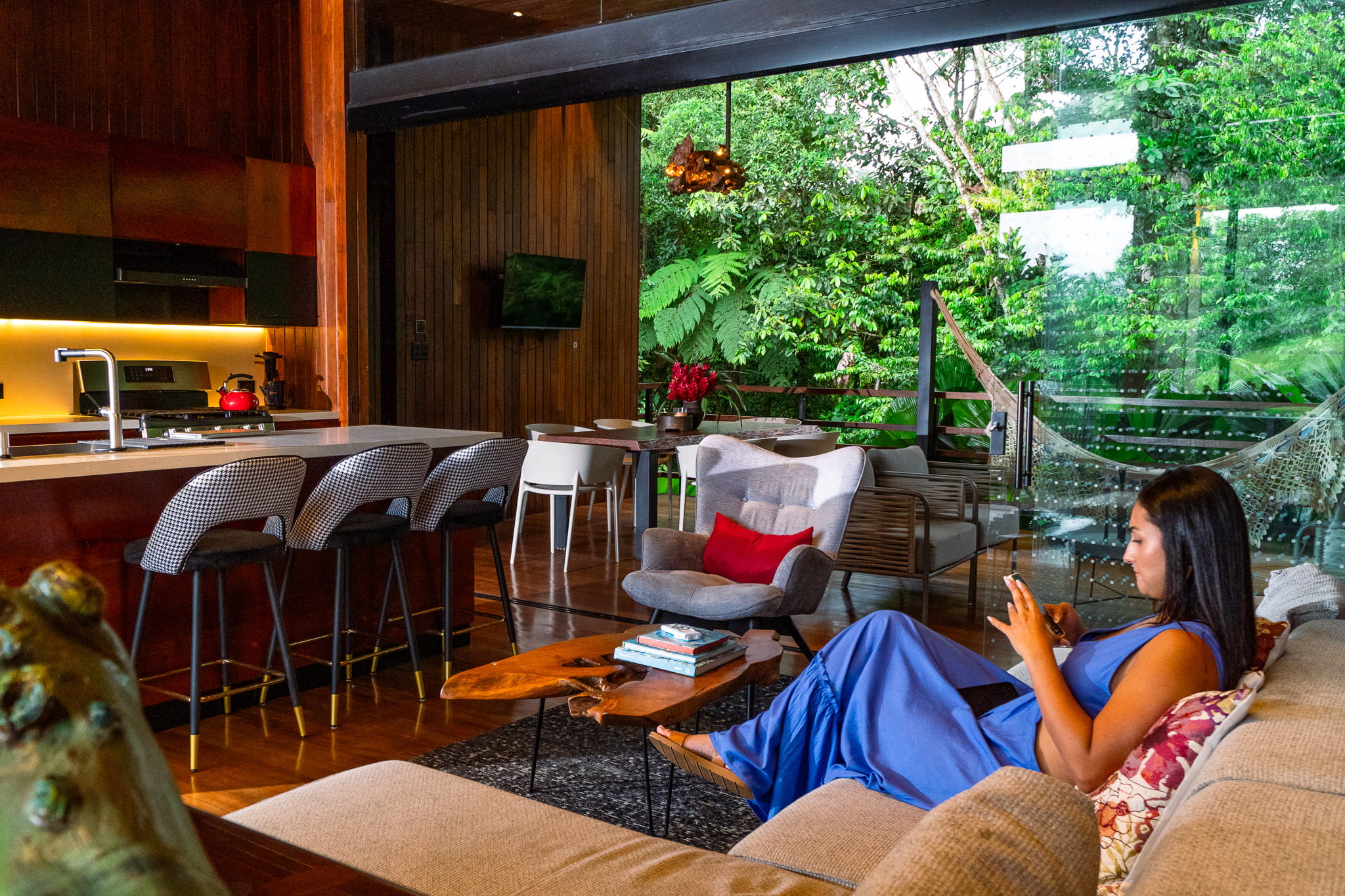 Villa Mariposa es un extraordinario refugio que se integra a la perfección en el frondoso bosque, haciendo gala de una arquitectura orgánica impresionante. Este diseño único garantiza que te mantengas en armonía con la naturaleza, permitiendo que tus sentidos se deleiten en la paz y la tranquilidad. Disfruta de una escapada serena donde la relajación y la belleza natural conviven con naturalidad.